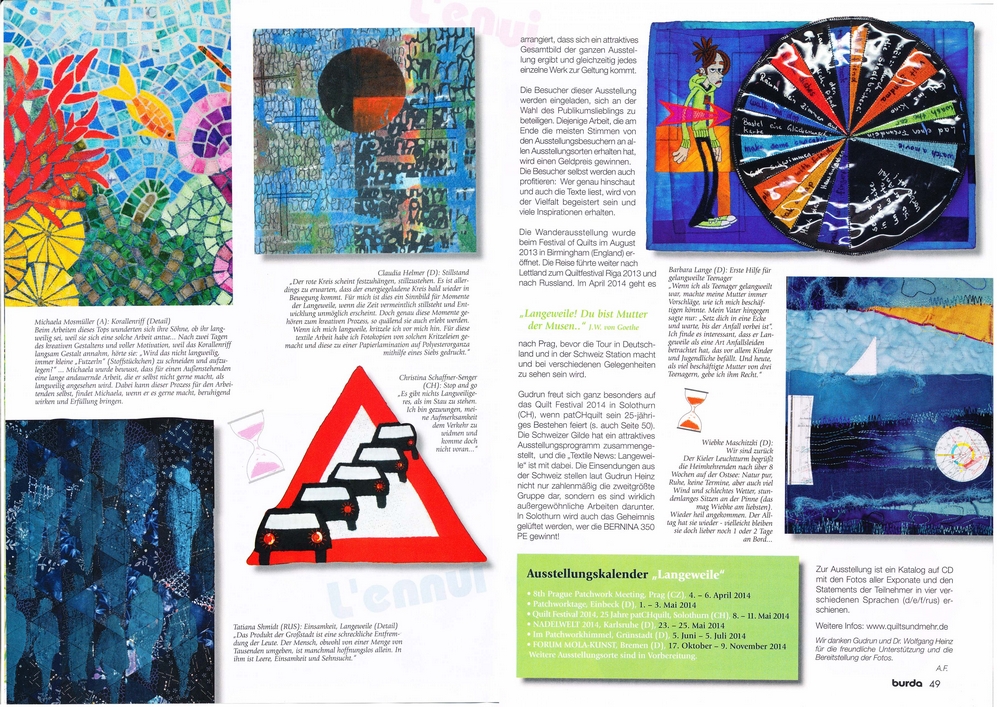 Review by Astrid Franchet, editor-in-chief of burda Patchwork in the spring 2014 issue: